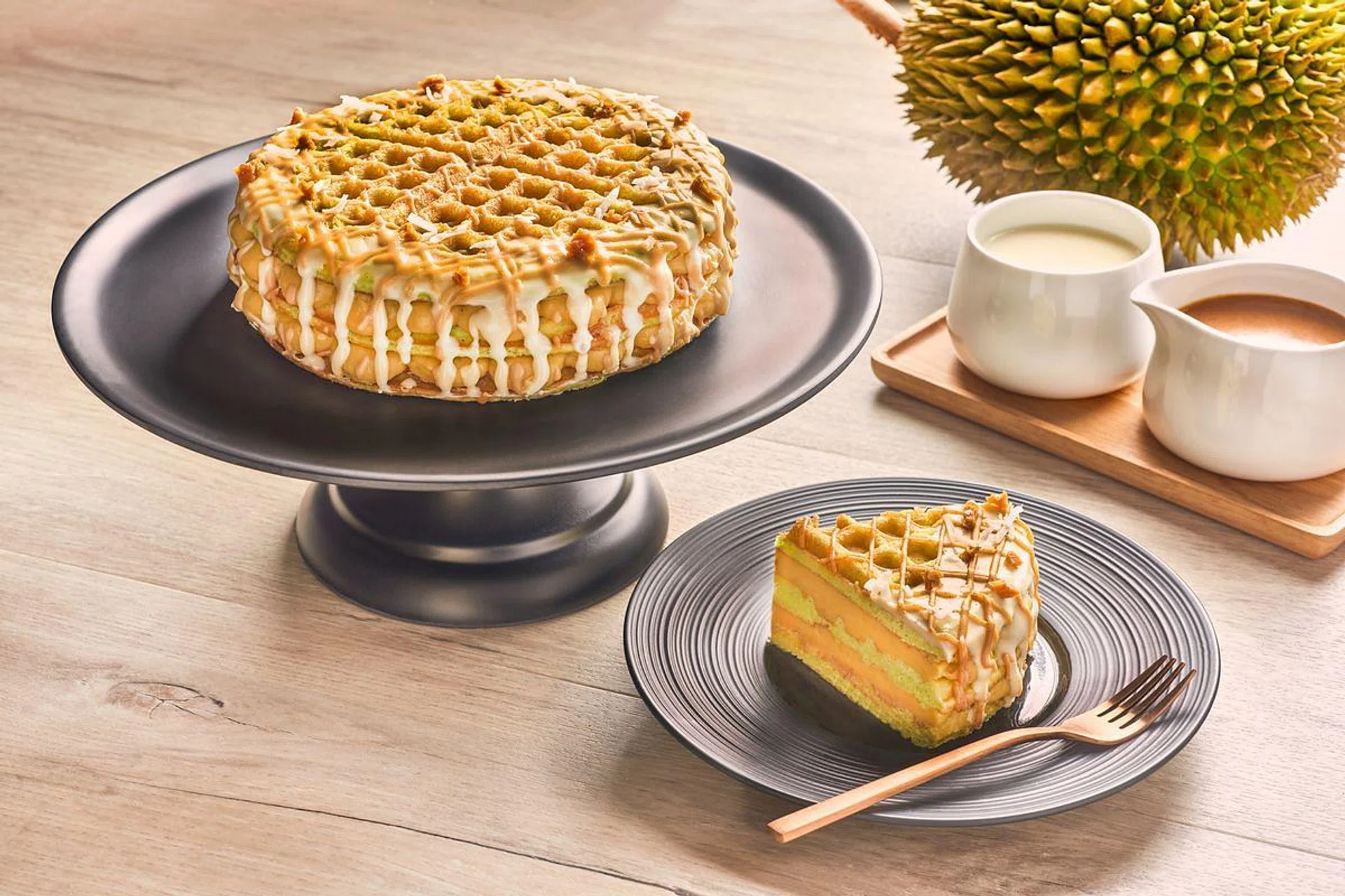 New creations this year include the D24 pandan waffle cake – a mash-up of the mille-feuille and a local favourite that sees pandan waffles layered with durian pulp and topped with caramelised coconut sauce, gula melaka coconut crumble, and desiccated coconut. There's also a take on the mont blanc, here rendered with purple sweet potato and durian pulp that sits on a chestnut almond cream tart shell.