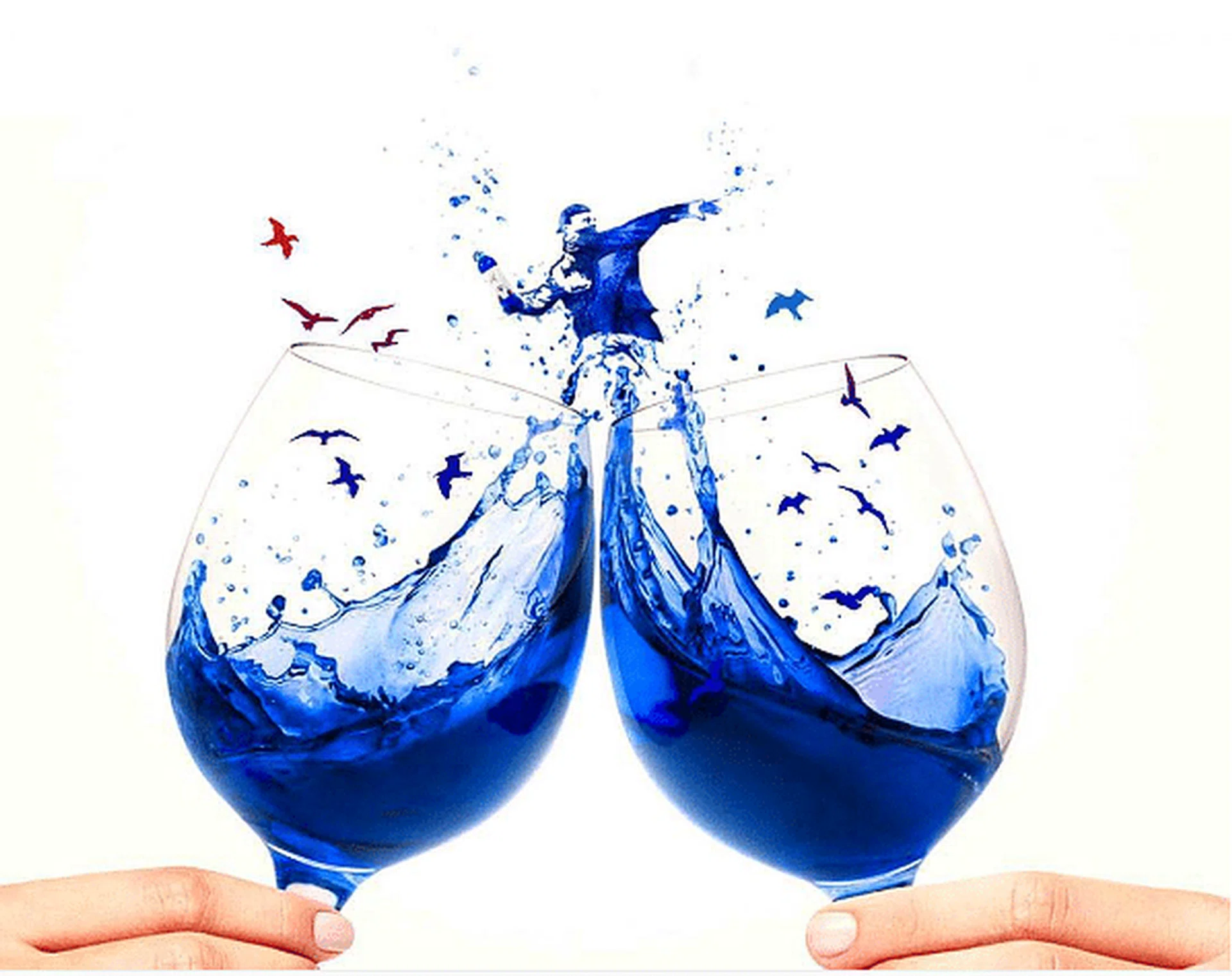 The poetic inspiration for a blue wine stemmed from the book Blue Ocean Strategy, written by a Korean-born business theorist which talks of the need to turn a "red ocean" (representing saturated business markets) blue with the use of innovation.