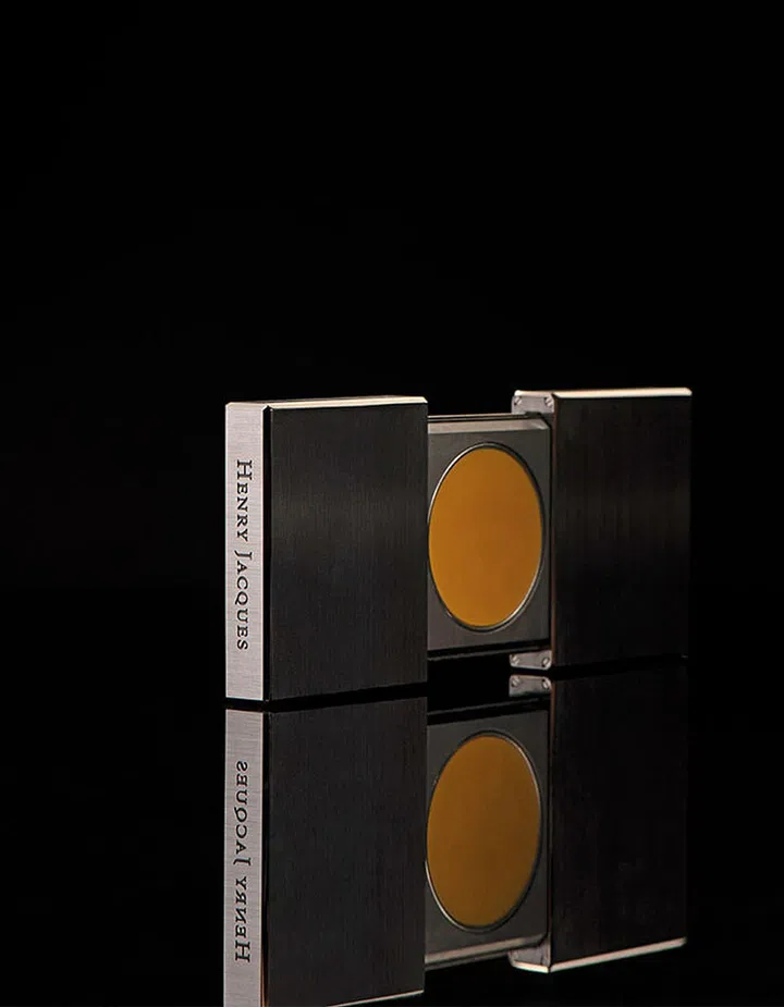 The case comes in titanium, carbon and gold, and houses Henry Jacques’ solid Les Classiques scents.