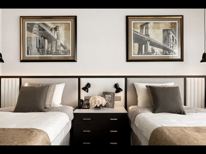 Small elements, such as the unique hanging lights and artworks help to differentiate the two daughters’ rooms.