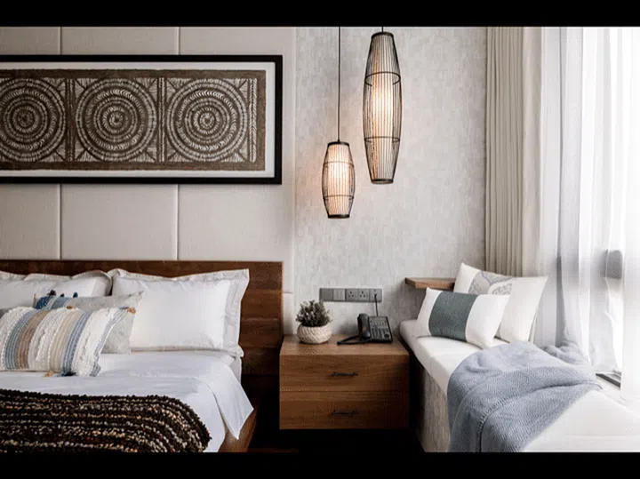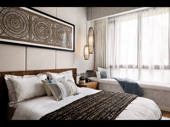 In this one, the wooden elements also add a tinge of tropical resort feel to the space.