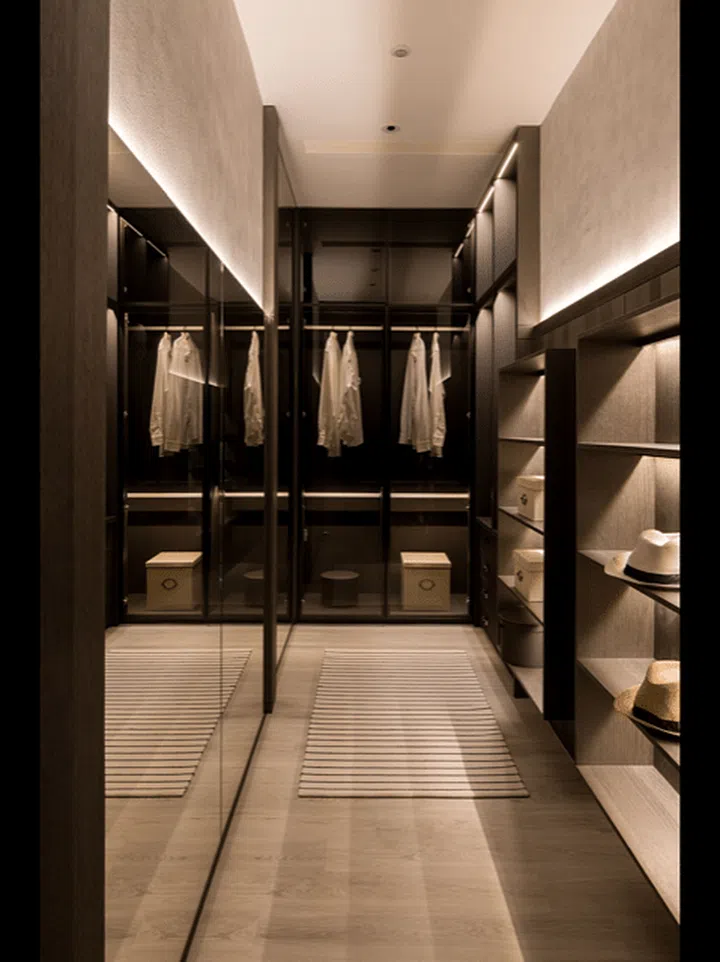 The design team carved additional space from the adjoining private lift lobby to make the walk-in wardrobe larger and more spacious.