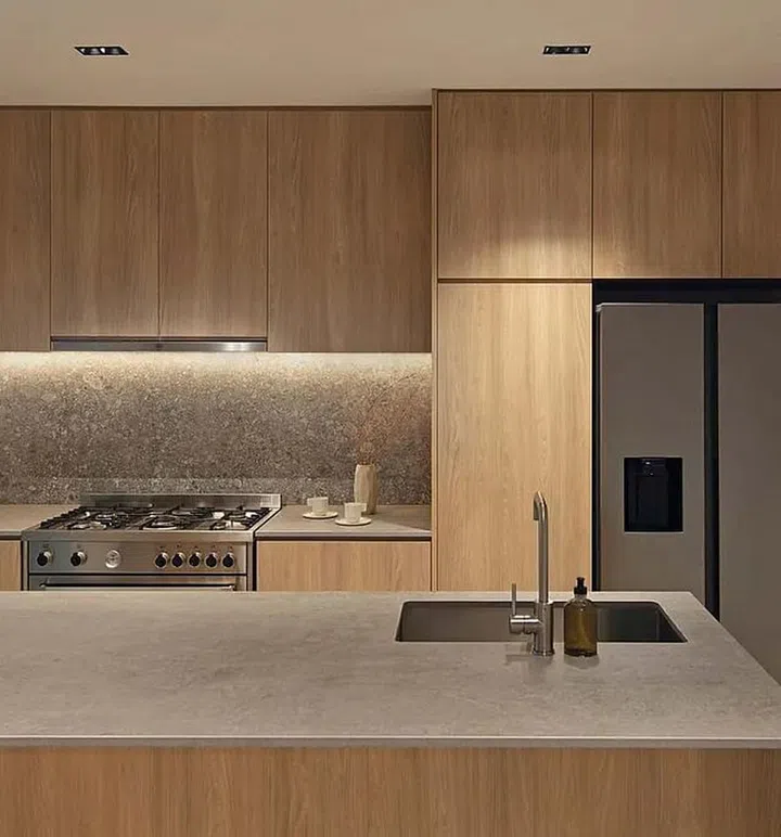 The homeowners have been cooking more since the circuit breaker, so functionality has been a top priority in the kitchen. Because the existing kitchen was dark and enclosed by structural walls, they could not open it up to allow more natural light in. To get around this, Shing Hui incorporated downlights, cove lights, and lights in the backsplash that allow the homeowners to modify the lighting according to their needs.