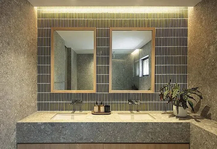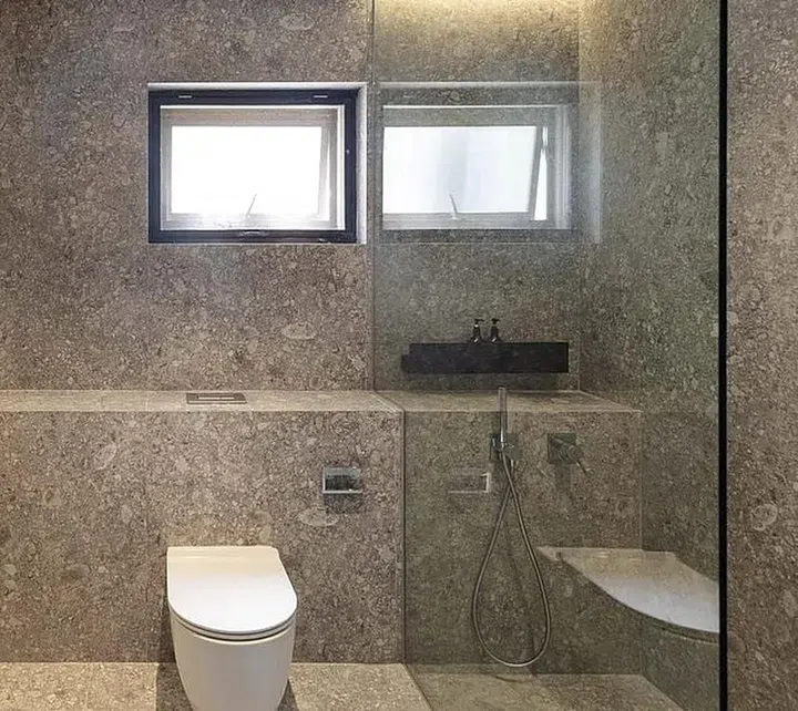 The dining area was merged with the living area to create a family room. To match the size of the master bedroom, the master bathroom was enlarged. The ageing piping, electrical wiring, air-conditioning and fittings were all replaced, but the duo chose to maintain many of the existing materials, such as the travertine and dark grey slate floors that were beautiful and which they recommended the clients keep