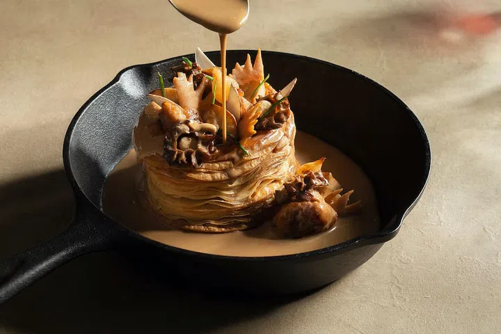The a la carte menu is extensive and eclectic. Diners can expect to savour traditional family recipes from the chef’s mother, Claudine. Signatures from the Cantal region include truffade, sauteed potatoes with Cantal cheese and garlic, or chou farci, a rustic dish of stuffed cabbage with pork. Aside from homespun regional creations from France, there will be a range of creations that Royer usually cooks for friends and loved ones. According to him, Claudine is all about offering an experience that is both convivial and generous.