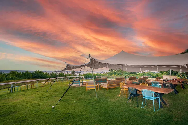 Pretend you're at a festival at The Lawn at Panamericana, where tables and couches overlook the Singapore Strait on a cliff. Reminiscent of Bali's clifftop restaurants, The Lawn is a perfect place to watch the sunset as you sip on cocktails poured from jugs such as the refreshing White Sangria.