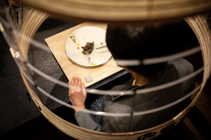 Restaurants, likewise, have had to make do with new rules. Dining rooms got a lot less cosy as warm bodies are replaced with mannequins, soft toys or cardboard cut-outs. Some establishments even threw out the dining room altogether, opting for a chair and a table in the middle of a field. But those are 2020’s ideas. It’s 2021, and Japanese ryokan Hoshinoya Tokyo – first established in 1914 – brings a fresh look to the pandemic-safe dining experience, even as Japan begins its way into the new normal.