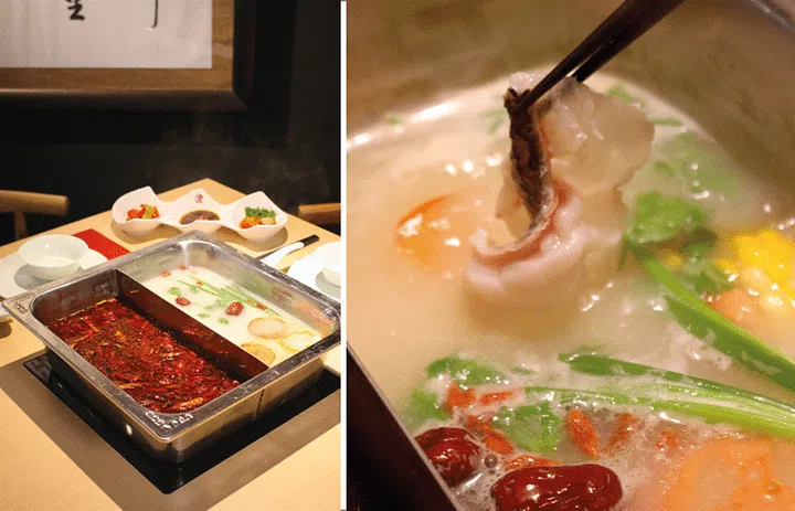 Tang offers three different Sichuan soup bases for it's hotpot.