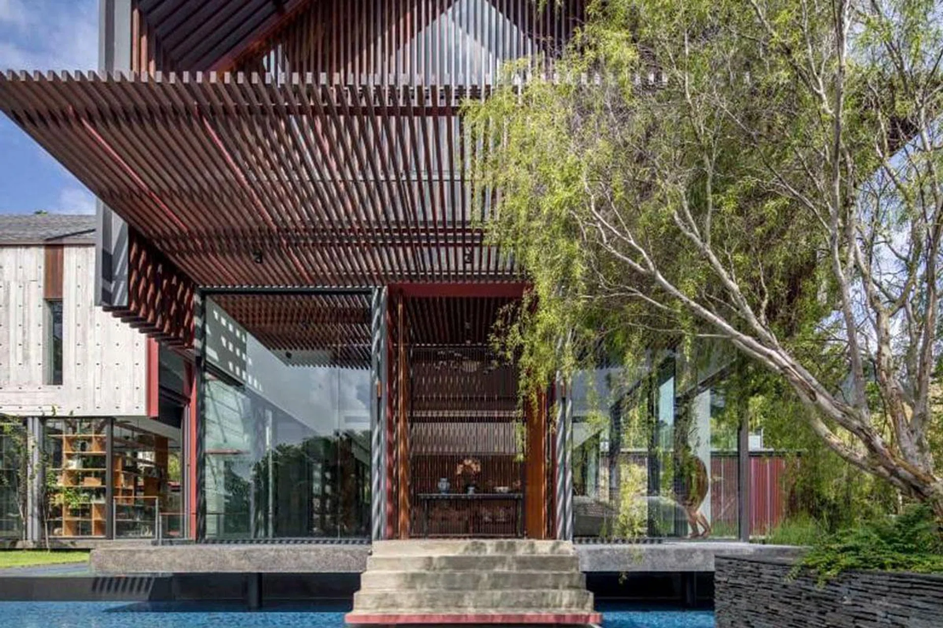Call it house and gardens: there are three distinct green spaces around the building, including a tranquil Japanese garden fronting the owner's master bedroom on one side of the house, with one tip of the angled koi pond touching a discreet shaded veranda that extends from the bedroom. Then there is a small "secret garden" in front of the daughter's wing and mostly hidden from view, and finally a "water" garden, so called because it complements the swimming pool and gym at the rear of the house. "With some projects, we think of architecture first but this is a blend of two important disciplines," says Keng.