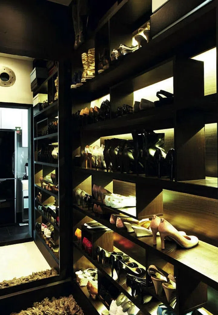 The household shelter was converted into a stylish walk-in closet for the wife’s shoes, bags and miniature perfume bottles.