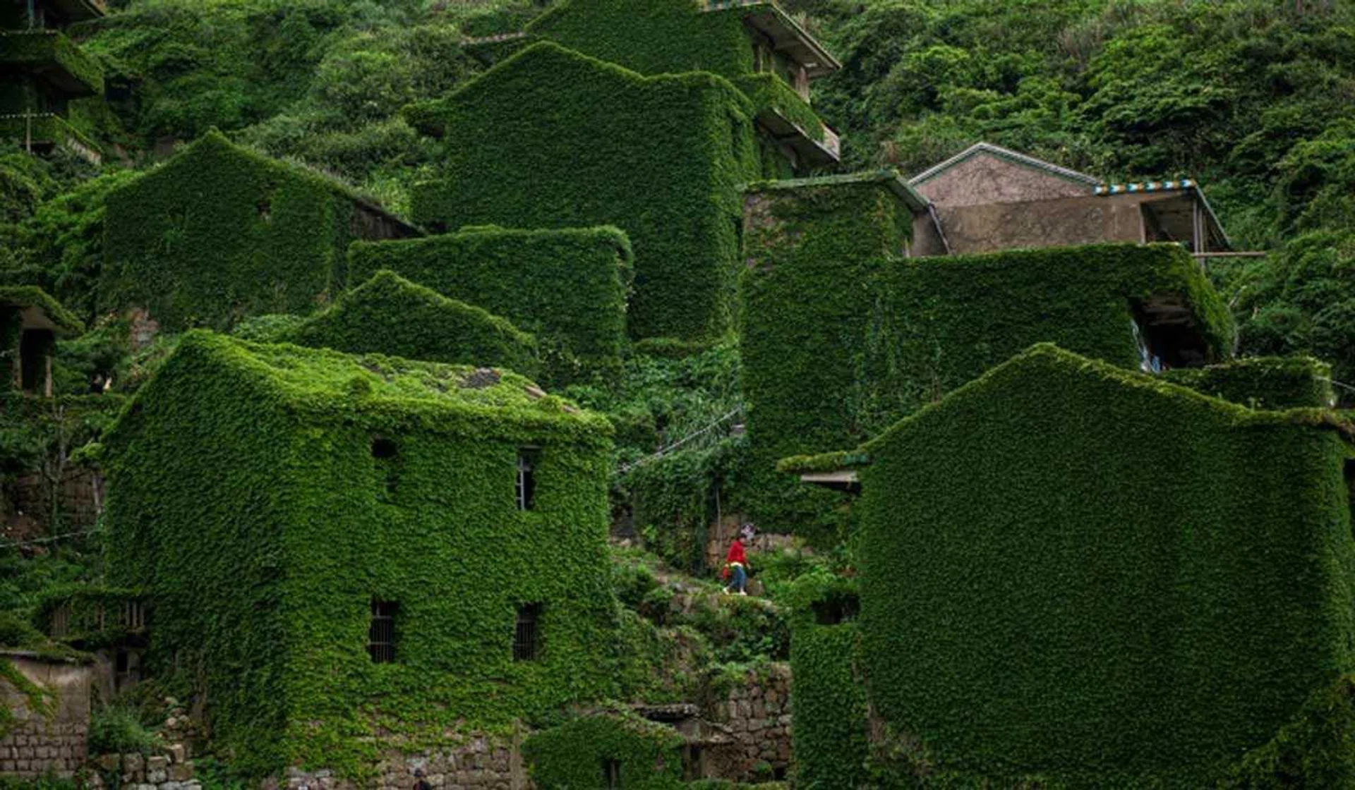 Houtouwan was once a thriving fishing community of sturdy brick homes clinging to the steep hills of the island of Shengshan. But it's now abandoned, with entire houses completely overgrown as if shrink-wrapped in a lush layer of green.