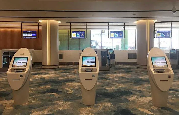 Early check-in kiosks at Jewel Changi Airport Singapore.