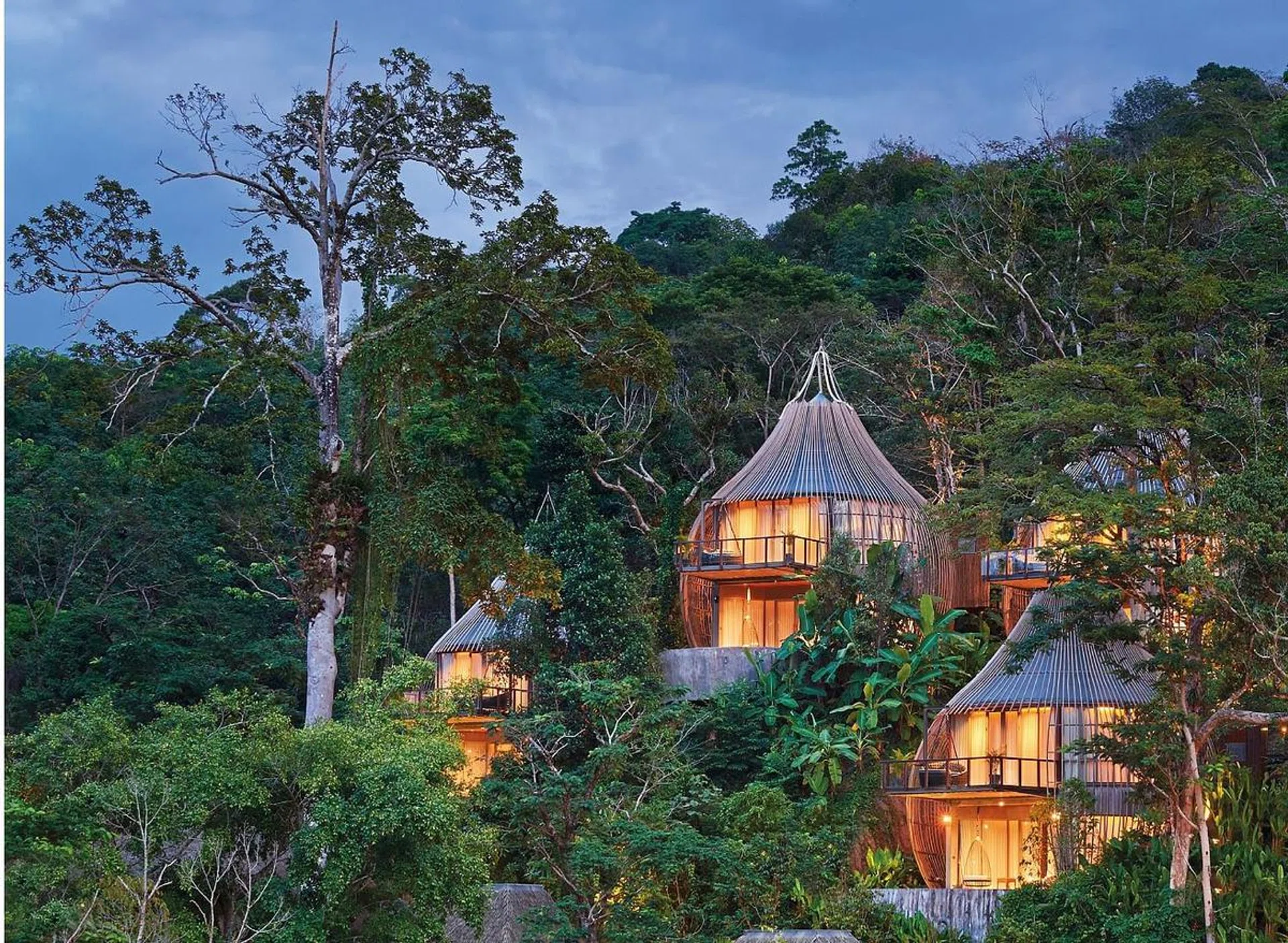 Nestled in a forest in Kamala, the individual villas resemble straw mushrooms with bullet-shaped roofs. Some, like the tree houses, seem to have grown from the trunks themselves. Designed by Thailandbased firm Architect Space, the grounds “are an expansion of the landscape, making use of natural features such as mature trees, streams and waterfalls”, says Samornpun Somnam, Keemala’s executive director.