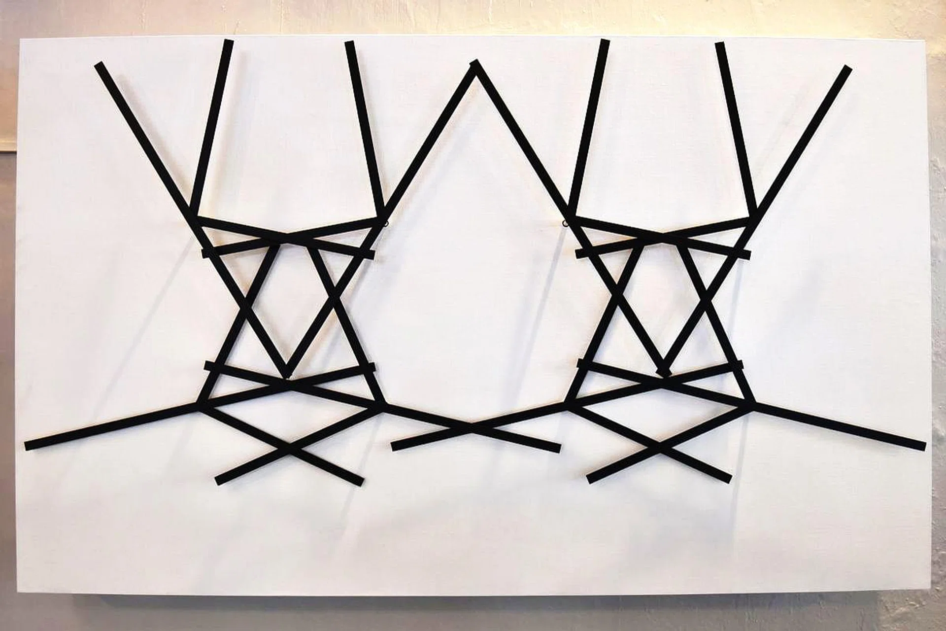 Van Weeghel's works usually feature solid shapes and lines that move in synchronous motion against a flat canvas, creating ever-changing shapes and patterns not unlike a Mondrian painting come to life.