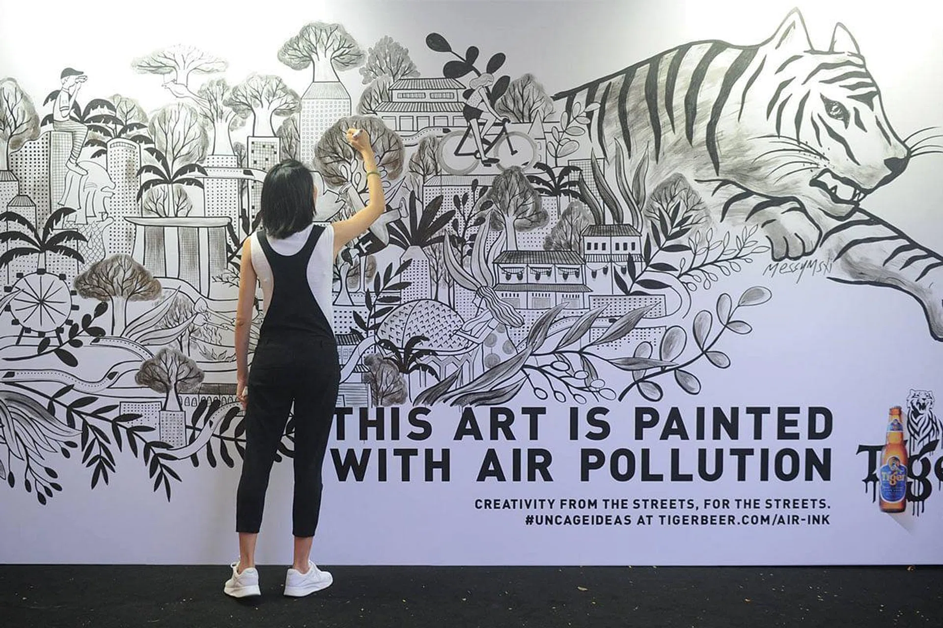 Tiger Beer, for instance, created Air-Ink, a black marker pen whose ink is made out of the vehicular soot that causes air pollution. Tiger then engaged local artists to use the pen to create art that draws attention to pollution.