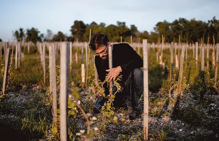 Age 28, he purchases his property in Landiras and sets about planting high- density ungrafted vines, including rare native varietals procured from the IFV (French Institute For Vines and Wines) that had gone out of favour when industrial practices were adopted for agriculture. “These plants would be considered as illicit merchandise according to appellation law,” the IFV director is pictured warning Pasquet.