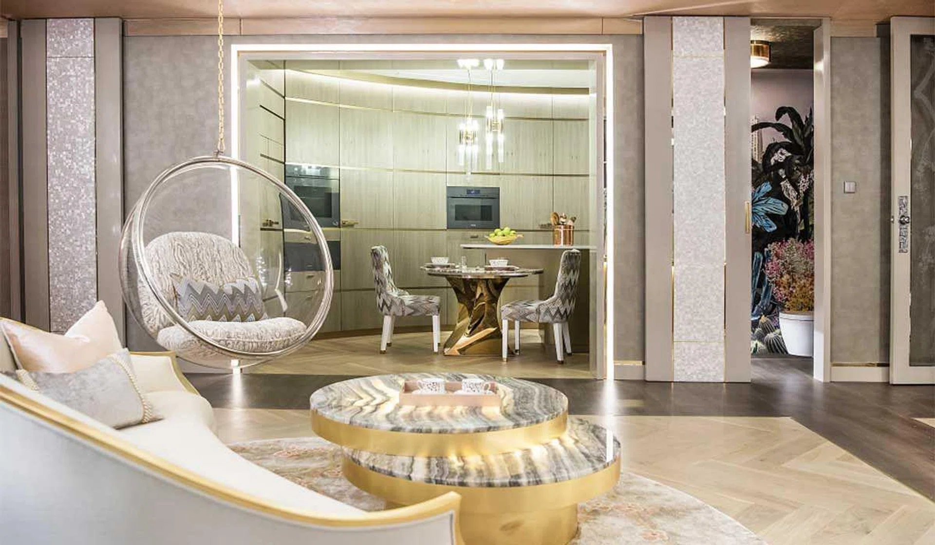 Flora motifs, matte veneers, and gold accents come together to form a luxurious, feminine cocoon right in the heart of the city.