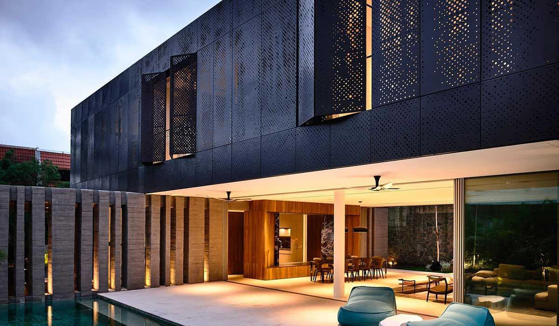 Luxury Homes: A resort-inspired home on Faber Drive clad in striking perforated metal screens