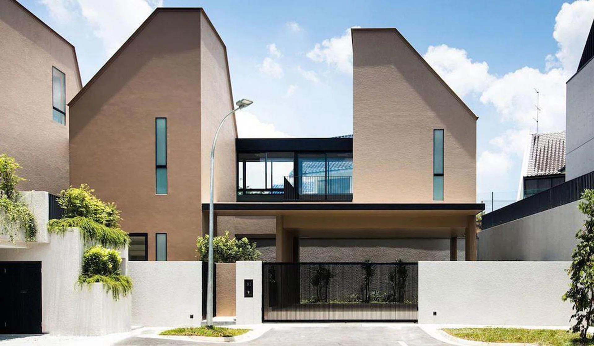 Designed by Studio Wills + Architects, this bungalow stands apart from the rest of the neighbourhood with its earthy tones and tall towers.