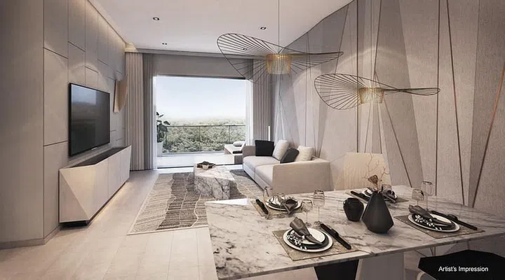 Other thoughtful design considerations include the raising of the balcony flooring to the same level as that of the living room - a common feature typically only found in high-end luxury properties that expands the amount of usable space of the residences. A useful pull-out table system optimises the kitchen counter area. Naturally, it’s an invitation for intimate house parties, where homeowners can make full use of the combined living room and balcony space for an alfresco affair.