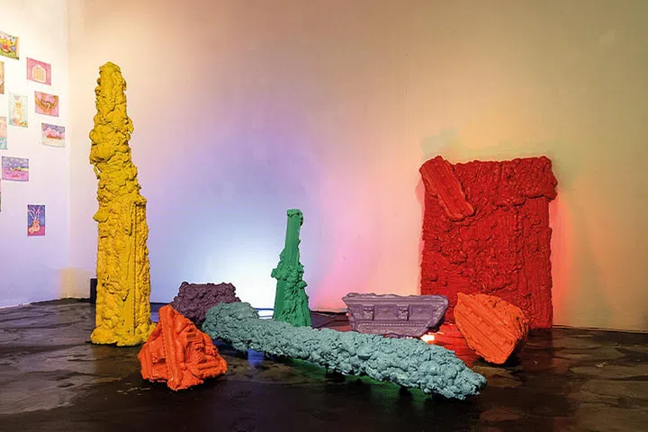 Mazlan’s 3D paintings, sculptures, and installations explore identity politics, queer aesthetics, and the domestic sphere as a destabilising realm using materials such as silicone, polyurethane, and gypsum.