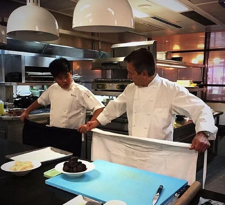 No shortcut to success - only sacrifice. Chef Daniel Boulud teaches an apprentice chef the basics. (Photo Credit: DB Bistro Moderne Instagram)