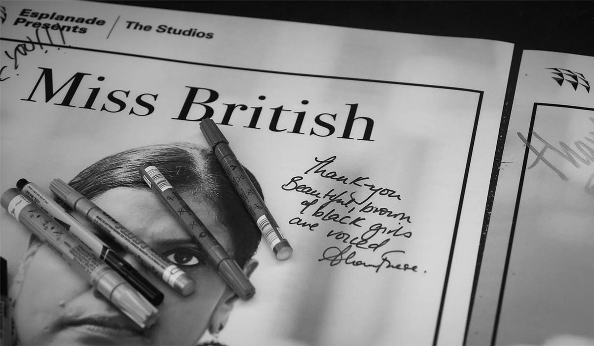 Miss British has been reimagined for this Studios season by Mexican director Felipe Cervera as intertwining monologues by Frese, who is of Jamaican heritage, as well as Singaporean performers Grace Kalaiselvi and Rebekah Sangeetha Dorai.
