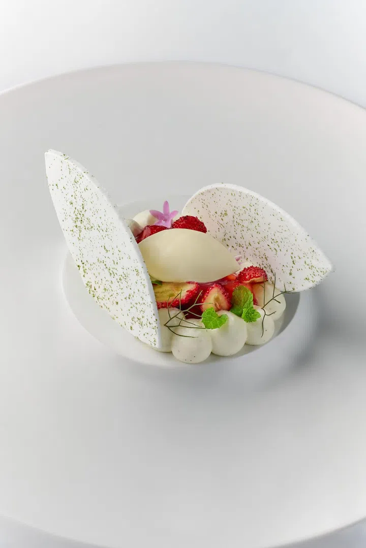 Inspired by a quintessential Earl Grey Milk Tea, the palate cleanser had a refreshing sorbet, fruit tea jelly and pomelo alongside a bay leaf topped with flowers, lemon balm and garden mint powder.