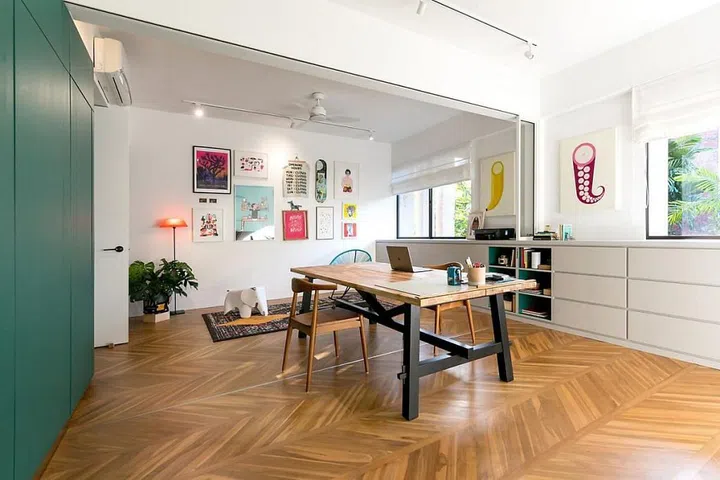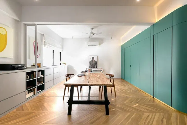 The homeowners had sought the help of the design studio to revamp a 1,938 sq ft terraced home they bought from the resale market. The design team sought to combine all the preferences of the homeowners into a chic modern style enhanced with an eclectic look.