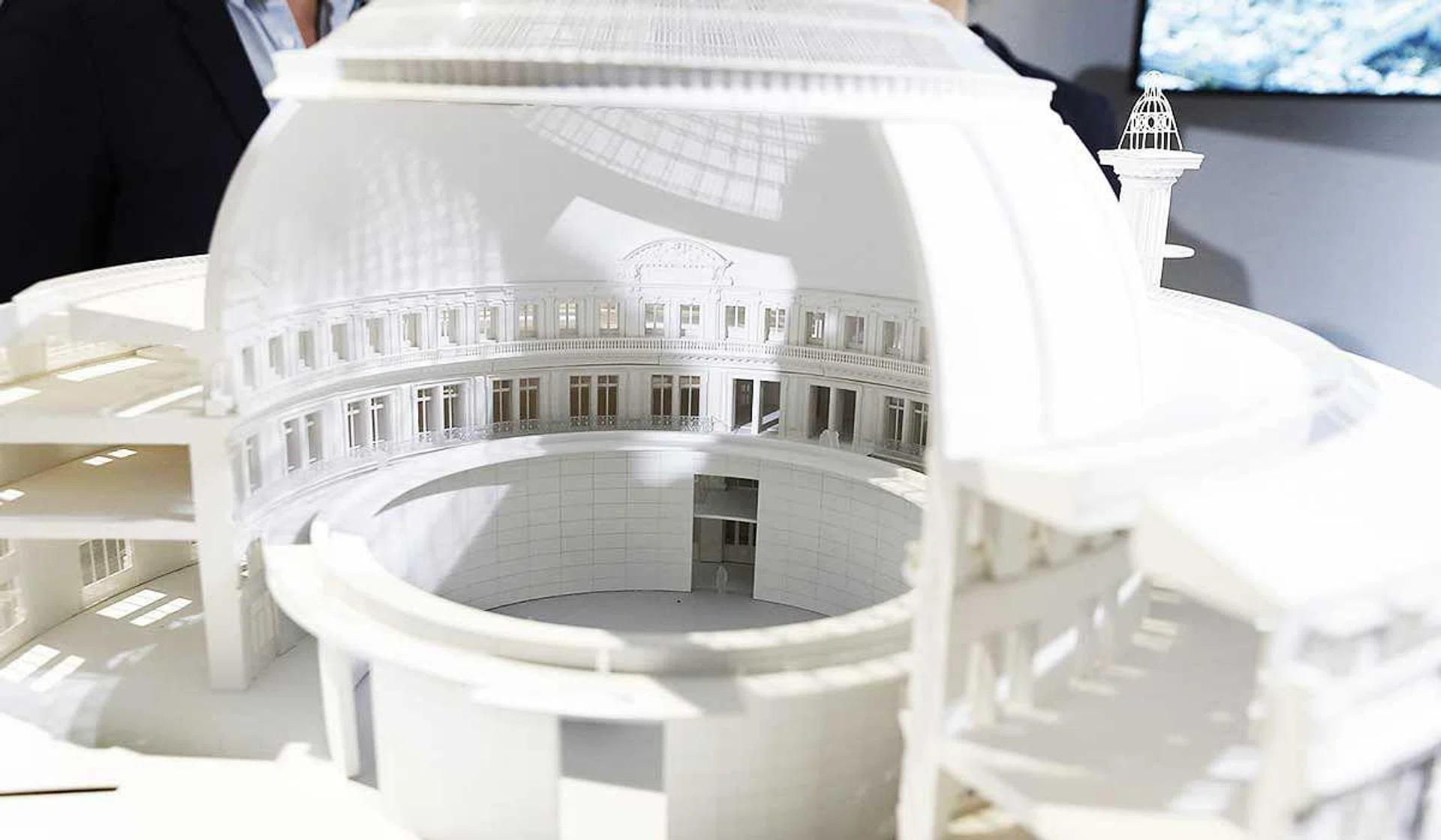 He said he would create three floors of galleries under the building's dome, whose spectacular frescos representing trade with the five continents are also being restored.
