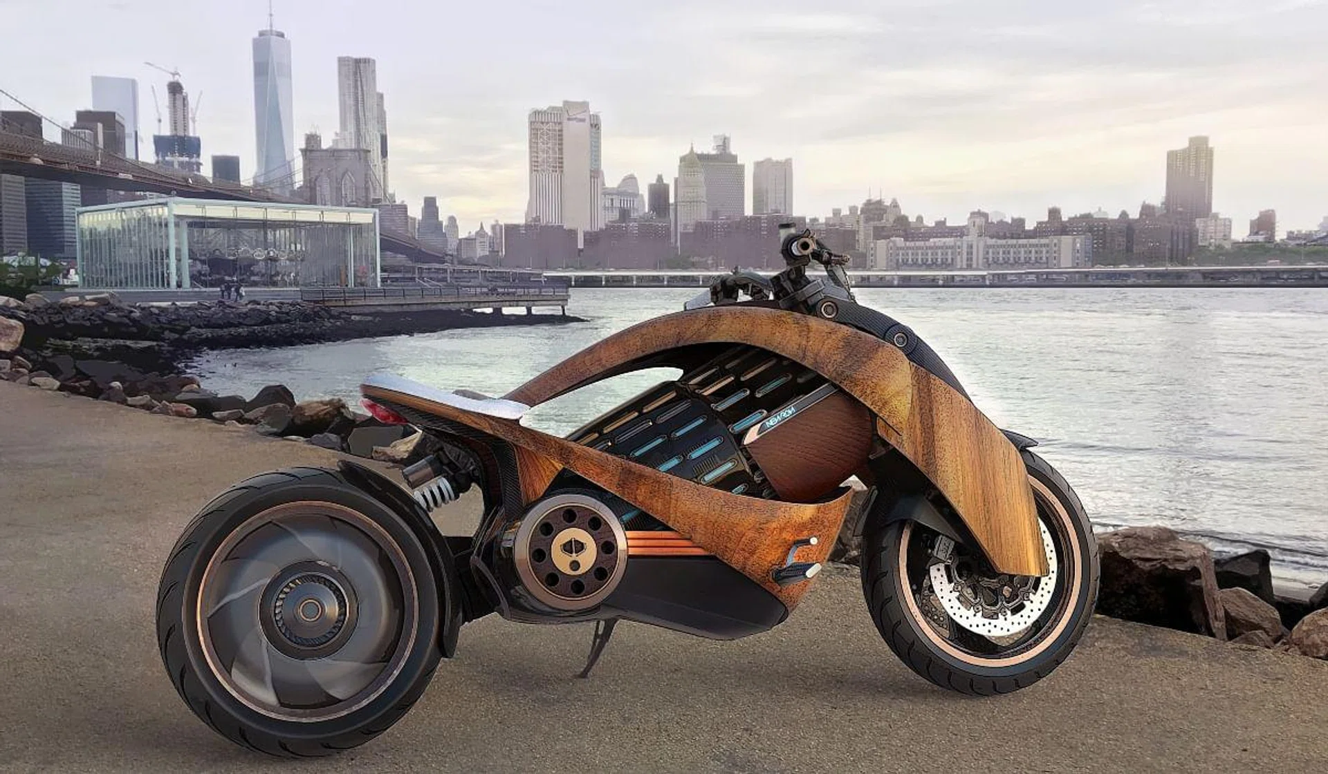 The future is electric. Or wooden? Newron Motors’ EV-1 motorcycle is the first bold attempt at combining both.