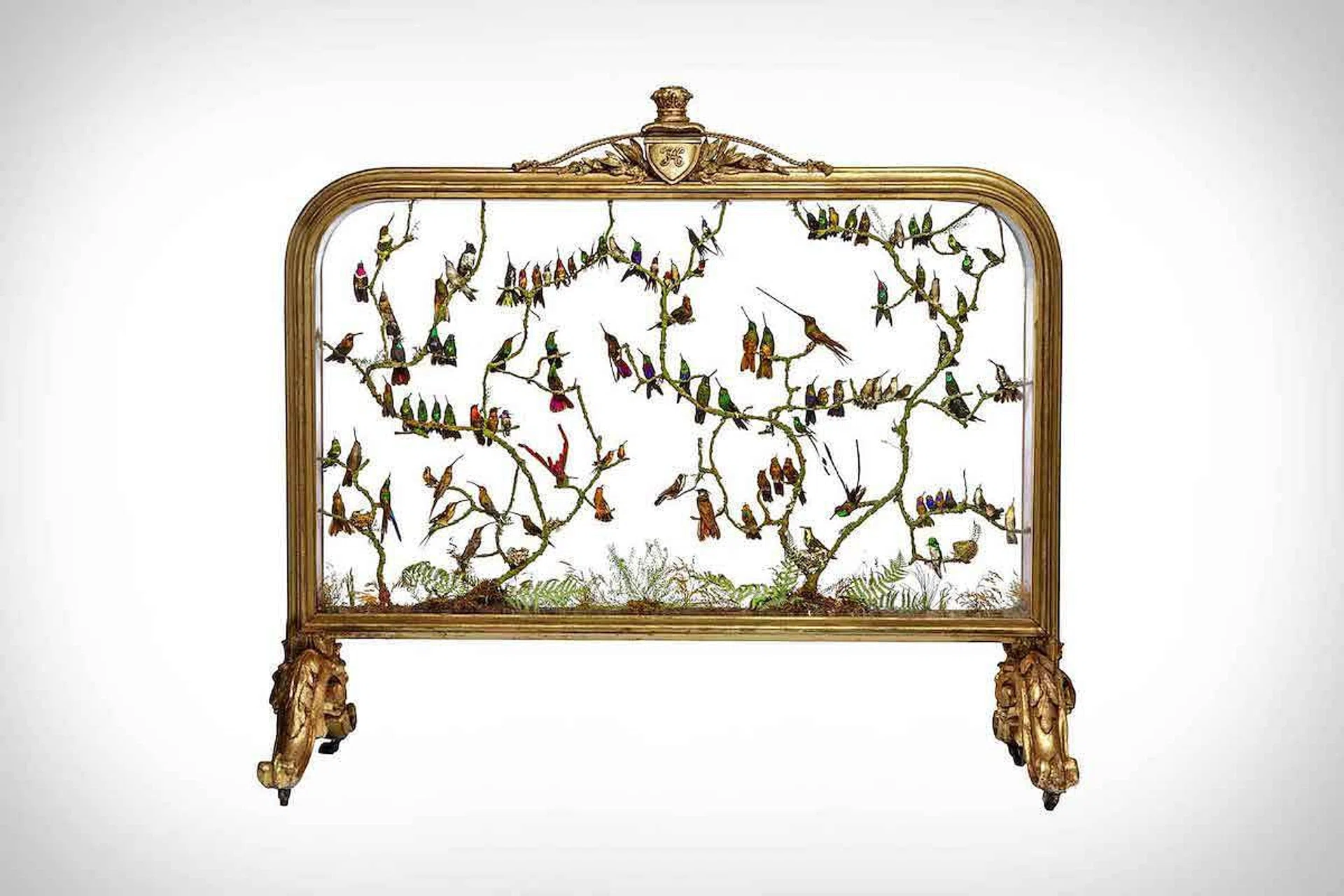 Object of Desire: Victorian antique fire screen of taxidermised Hummingbirds