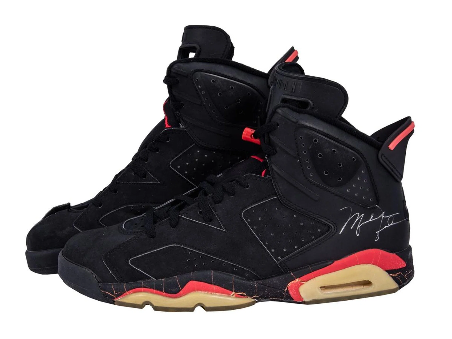 Michael Jordan himself wore and signed (twice) these black sneakers. They come from the personal collection of a former Nike executive called Sonny Vaccaro. He received the pair as a gift after the first Chicago Bulls victory during the 1991 US basketball championship. This match made history since it was Michael Jordan's first NBA Finals appearance and Magic Johnson's last.