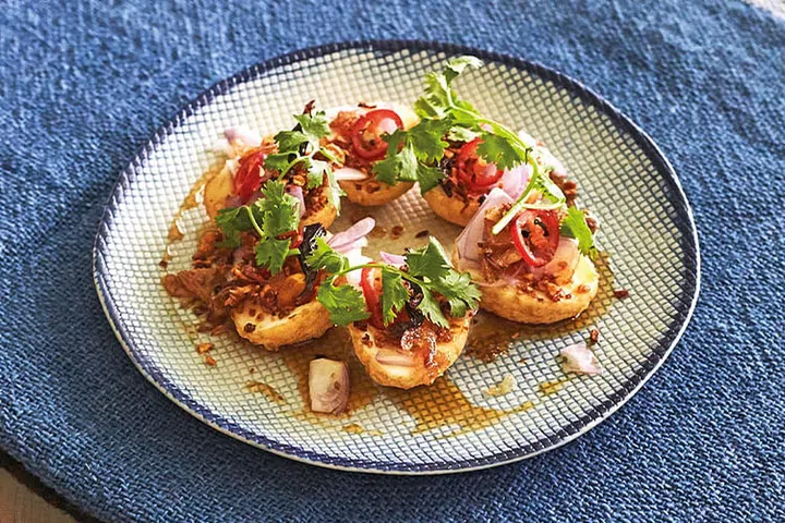 Crispy Rice Salad (Yum Khao Tord) is one of his most popular dishes. “This has a crispy rice base which I marinate with spices and deep-fry and then toss with herbs and a shrimp chilli jam sauce before finally topping it with a raw mango salad. There are two layers of crunch, plus lots of sweet and sour elements that come together really well,” he says.