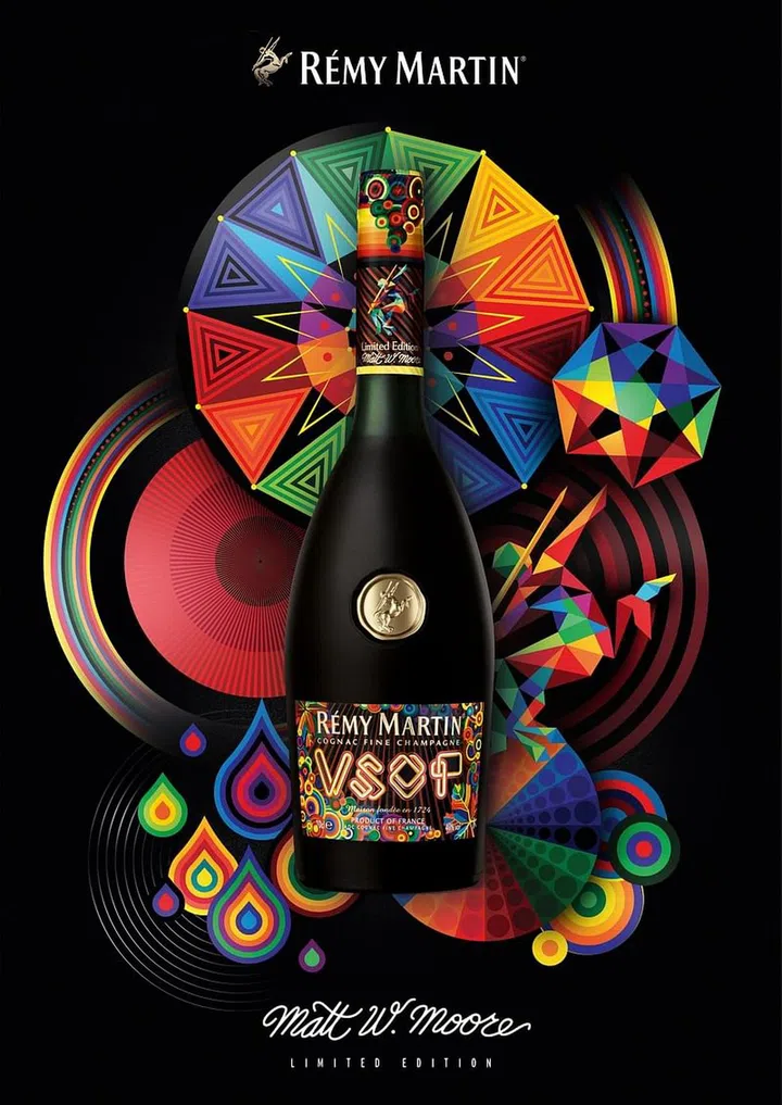 Cognac isn’t exactly viewed as the trendiest of spirits, but we applaud any effort the industry has made to remedy that. Like how Remy Martin has roped in Matt W. Moore, painter, aerosol artist and graphic designer, to apply his “Vectorfunk” style to Remy Martin’s latest VSOP Limited Edition.