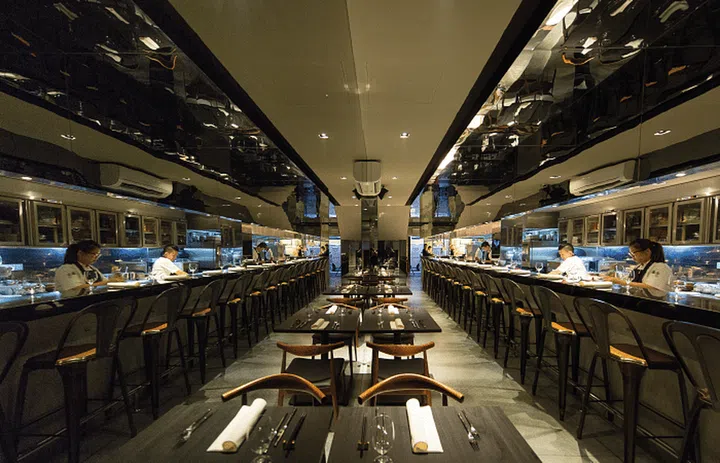 New restaurant Meta has a head chef with stellar credentials. South Korean chef-owner Sun Kim has worked in acclaimed chef Tetsuya Wakuda’s restaurants - Tetsuya's in Sydney and Waku Ghin here - but it’s hard to discover this by asking Kim himself. Despite the open kitchen and counter seats in this dark 30-seater space, Kim's reserved nature means you'll hardly find yourself engaged in small talk with the chef, save for him popping up occasionally to explain one or two dishes.
