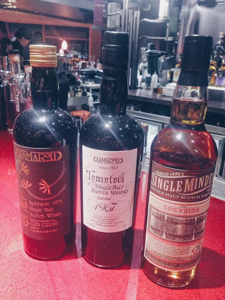 There are suggested wine pairings, but skip that and go for the rare whiskies like a Toumintol 1967 Single Malt, a Samaroli Speyside 1973 or a Single-Minded from independent bottler Douglas Laing.