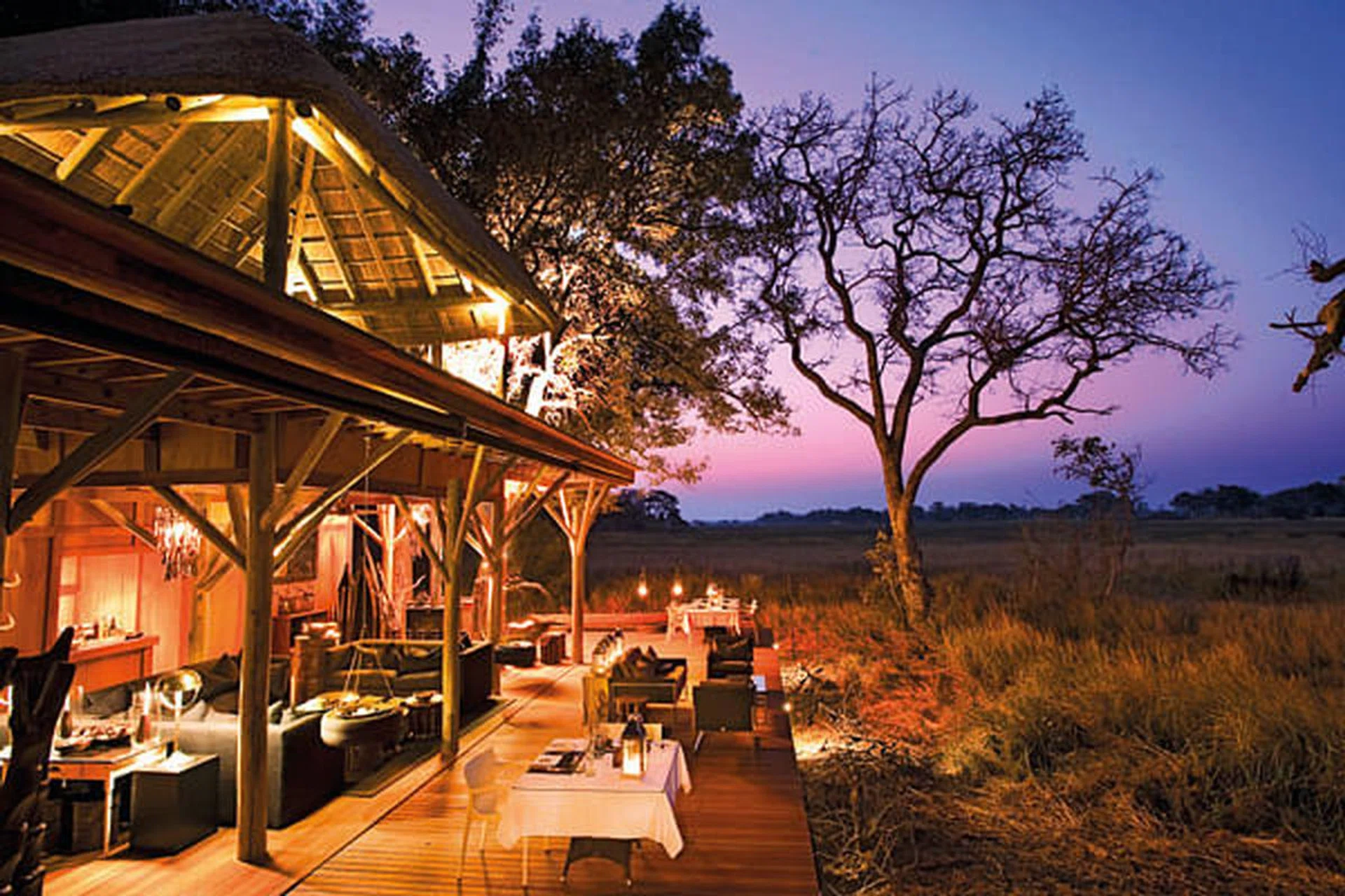 The heat of the day usually means that lunch is served back at camp, followed by a few hours for a dip in your private pool, reading in one of the hanging chairs in the airy lounge, or napping in the coolness of your luxury tent. Sunset is best experienced from the low vantage point of a mokoro – a traditional dugout canoe – or sitting back with a refreshing gin and tonic, and hearing the animals come to life as the sun’s strength fades.