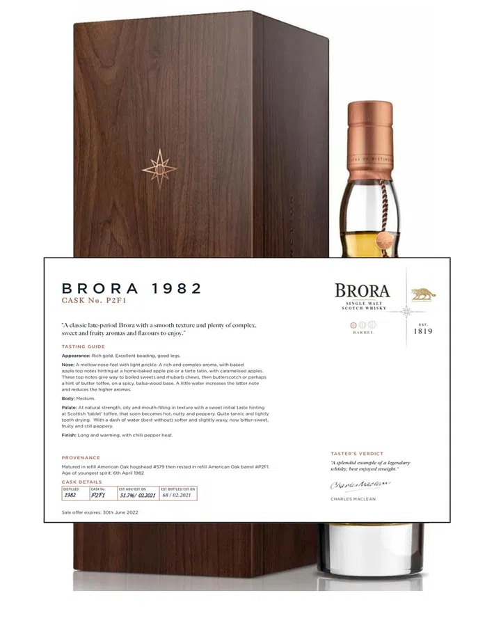 Another expression has also emerged. Singapore-based 1982 Brora Pte Ltd launched digital tokens – tagged to one physical bottle – backed by an actual eponymous cask of Brora 1982 whisky (notes below).