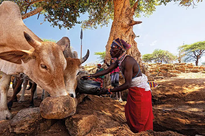 “There is a ceremony called ‘singing wells’ which is unique to this part of Kenya where during a drought, they dig a few metres into the ground to get water. The warriors collect buckets of water and send them up to the surface to fill a trough. Then each warrior sings a personal song to call his cow to the water and pacify her. It is magical,” says Cohen.