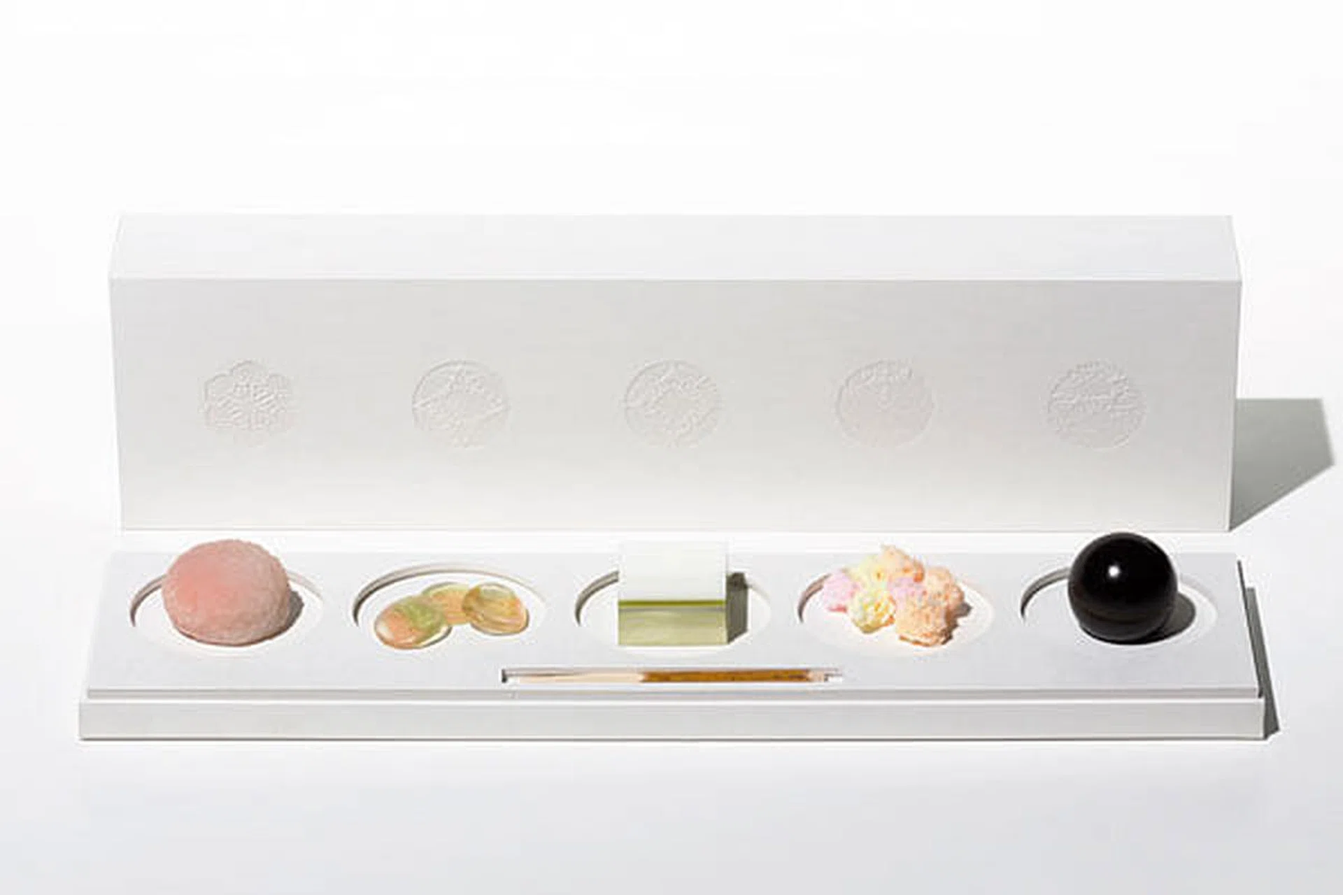 Design engineer Kotaro Watanabe has collaborated with 480-year-old confectionery company Toraya to produce Hitohi (meaning “one day” in old Japanese), a set of five wagashi which condenses the appreciation of seasons into the appreciation of a day’s progression.