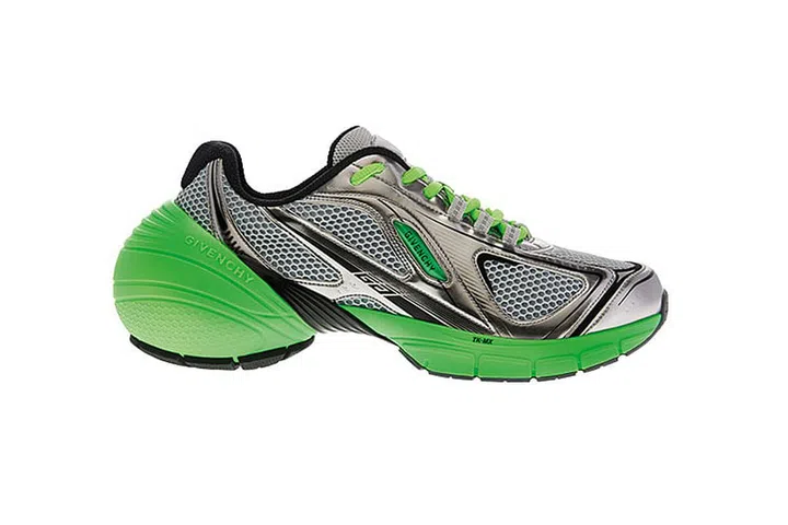 A brand-new style by Givenchy for spring/summer, the TK-MX sneaker, like many of its peers, takes its cues from running shoes. From dynamic lines to a mix of materials that incorporates reflective accents, all the usual running-shoe details are there. Givenchy’s take, however, stands out with its rounded “bubble” structure at the back of its sole. It might not be the best thing for running, but it certainly scores high for flair.