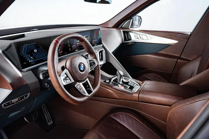 Other new details include the BMW logo laser-etched onto the back window, a nod to the M1’s design back in the ‘70s; an all-in-one curved display merging infotainment and instrumentation; and interior finishings both reminiscent of luxury and motor sport as a reflection of how the XM straddles both worlds.