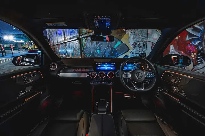The MBUX multimedia screen takes pride of place in the car’s dashboard. The intelligent infotainment screen allows you to select from a multitude of display options — from GPS navigation to car control settings. For those who like to customise your car, you can even adjust the car’s interior strip lighting — there’s over 60 different colour options to choose from.