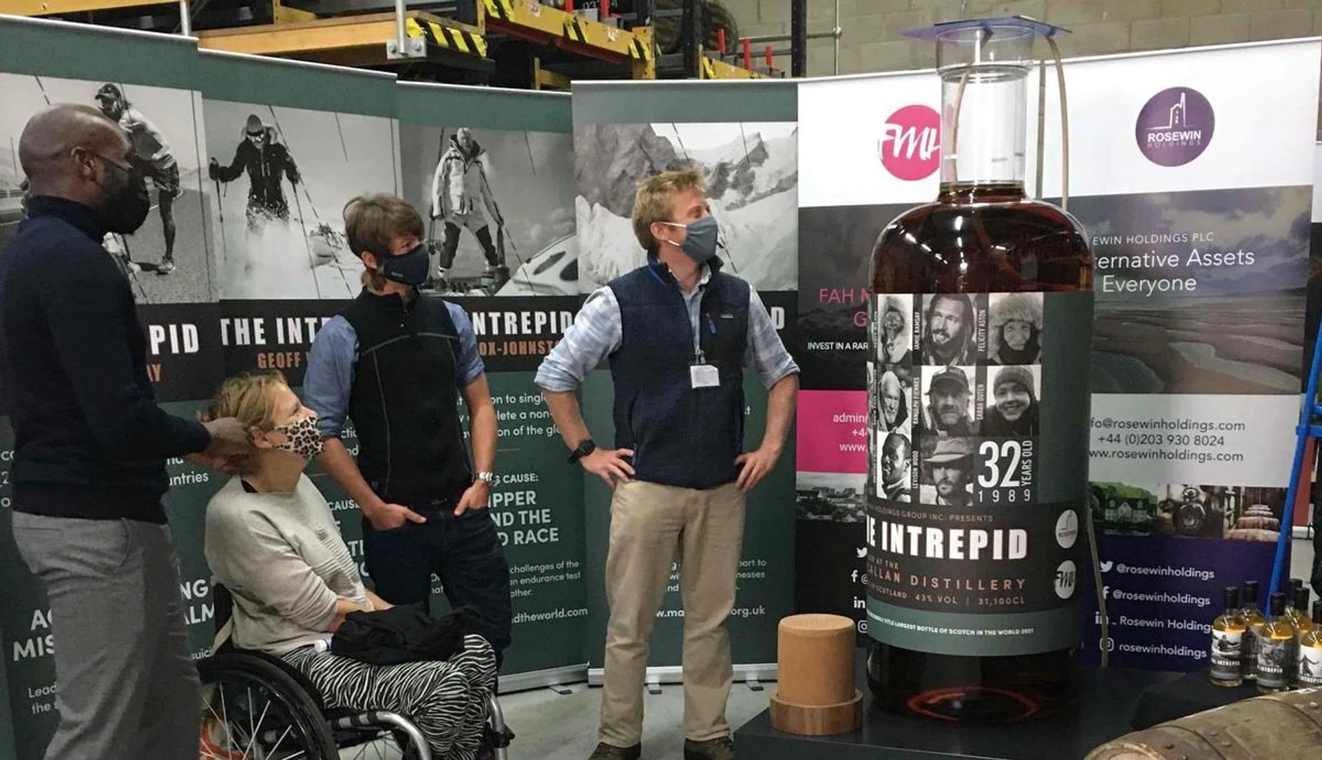 The remaining whisky from the two sister casks it was matured in will be split among a dozen other 50cl bottles – one, a replica of the main bottle design, and the others with individual designs dedicated to each of the 11 explorers – that will also be put up for auction alongside the 311-litre mammoth.