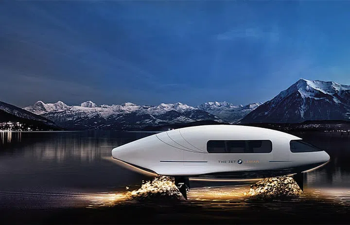 In contrast to seaplanes, The Jet ZeroEmission will glide about 80cm above the water. Designed with foils that lift the hull out of the water, the boat provides a quiet, low-resistance and fuel-efficient ride. Thanks to its quiet hydrogen-powered engine, it promises to be one of the smoothest, and most spectacular, ways to travel in the future.