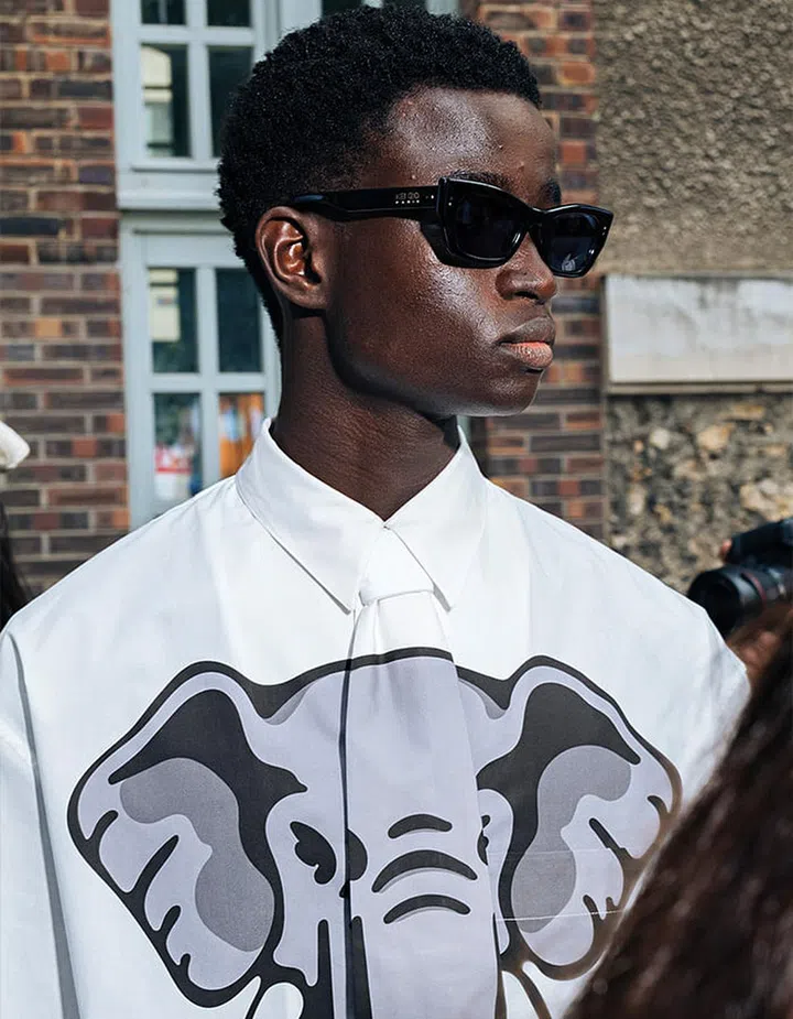 Melding playful graphics and the rigour of tailoring, Kenzo’s ties served as perfectly positioned finishing touches to printed tableaus featuring an elephant and florals.