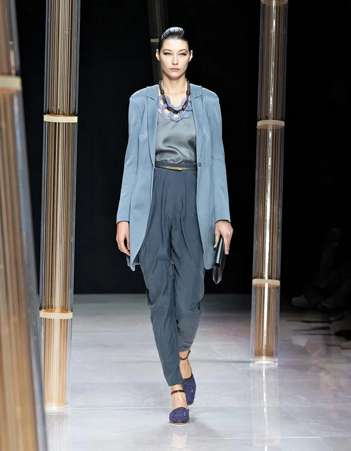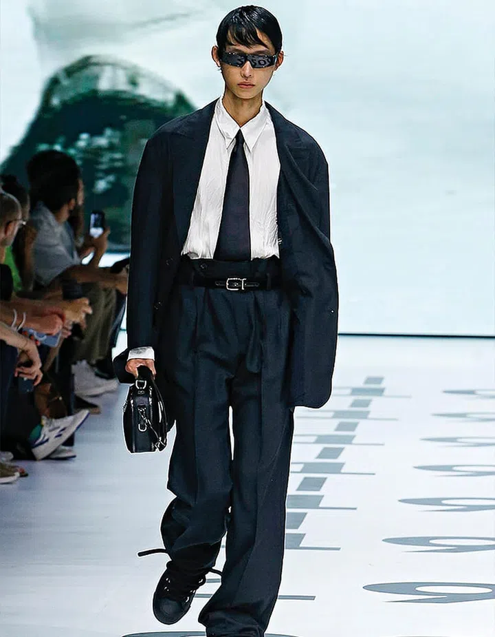 Fellow Italian powerhouse Giorgio Armani, on the other hand, once again demonstrated his label’s timeless appeal with elegant, flowy tailoring that embodied effortless glamour.