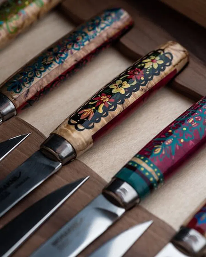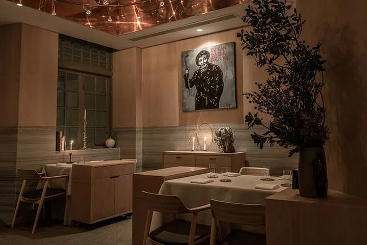 They might escape the reveller coming in for a cheap and cheerful meal of gastropub and beer, but there is an overwhelming load of bespoke details even the most casual of establishments within the group. The level of detailing is, of course, different for the various restaurants. For example, while the traditional Swedish hunting knives used at Frantzen Kitchen might be painted a single colour for the hands, those at the fine dining venues would be decorated with an intricate Sweidsh kurbitz motif by a painter. At Restaurant Zen, one would also find an array of bespoke service ware, from wooden utensil cannisters with sumptuously velvety exteriors to rustic canape pedestals designed by Frantzen and handmade by Swedish ceramicist Calle Forsberg.