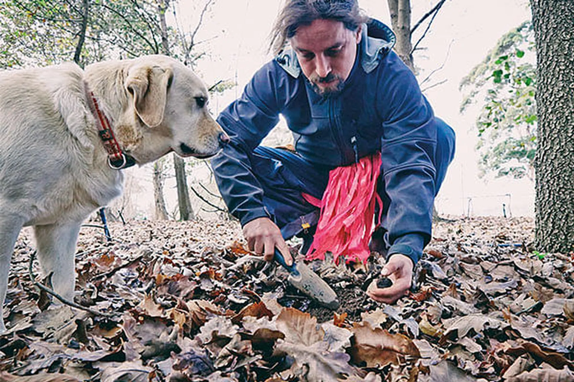 “Lola, where’s the truffle?” asks Adrian Mielke, a truffle hunter with the Truffle & Wine Company, as we snake through rows of hazelnut and oak trees one chilly June morning. The four-year-old golden labrador blinks up at Mielke, sniffs the ground and bounds off into action, its feet crunching on the fallen leaves and acorns.